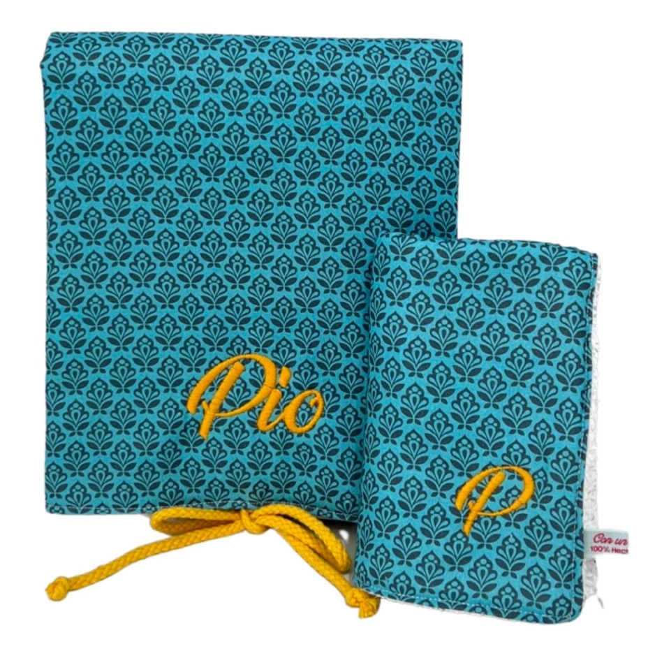 Puedes personalizar los productos de todas las canastillas de bebé con el nombre del bebé bordado, o con el texto o las iniciales que elijas, gracias a los bordados artesanales que realizamos en Con un buen lazo.